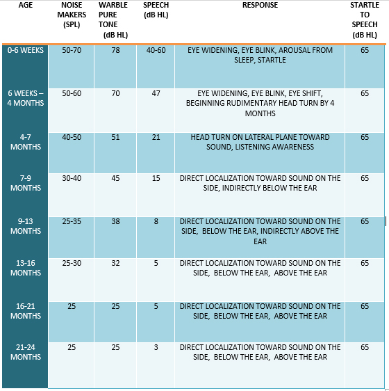 The following are certain responses one should expect at a certain age. Visiting an audiologist or a speech language pathologist with make it easier for you to understand them better.