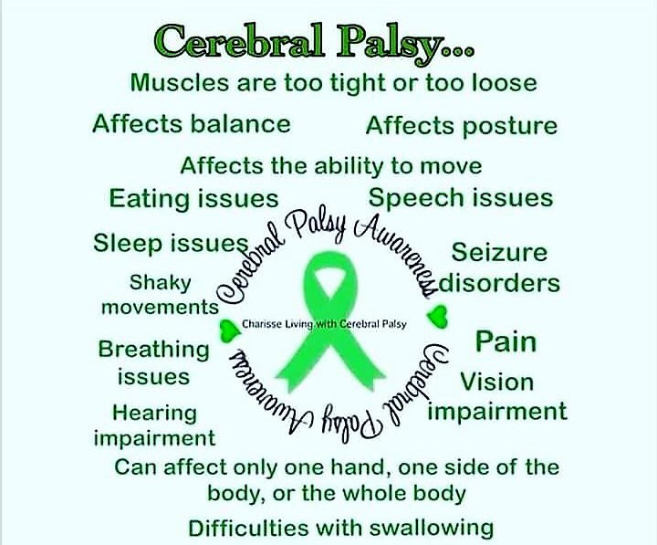 - Cerebral palsy (a movement disorder caused by brain damage).